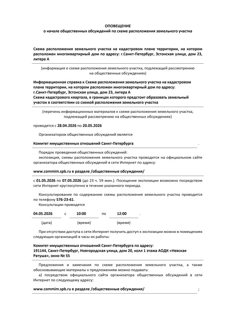 Комитет имущественных отношений Санкт-Петербурга уведомляет