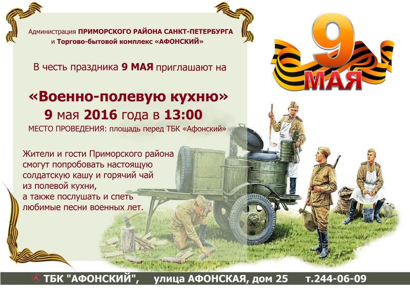 Администрация Приморского района и ТБК «Афонский» приглашают на праздник 9 мая