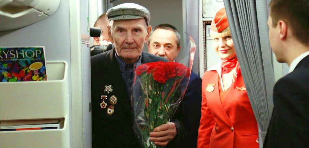 Ветеранам и инвалидам Великой Отечественной войны, бывшим несовершеннолетним узникам фашизма, проживающим на территории России, в странах СНГ, Прибалтики и Грузии и являющимися гражданами соответствующих стран, предоставляется право полностью бесплатного перелета в экономическом классе обслуживания. Аэрофлот берет на себя оплату не только тарифов, но и всех сборов. Также каждый участник праздничной акции имеет право оформить бесплатную перевозку одного сопровождающего.