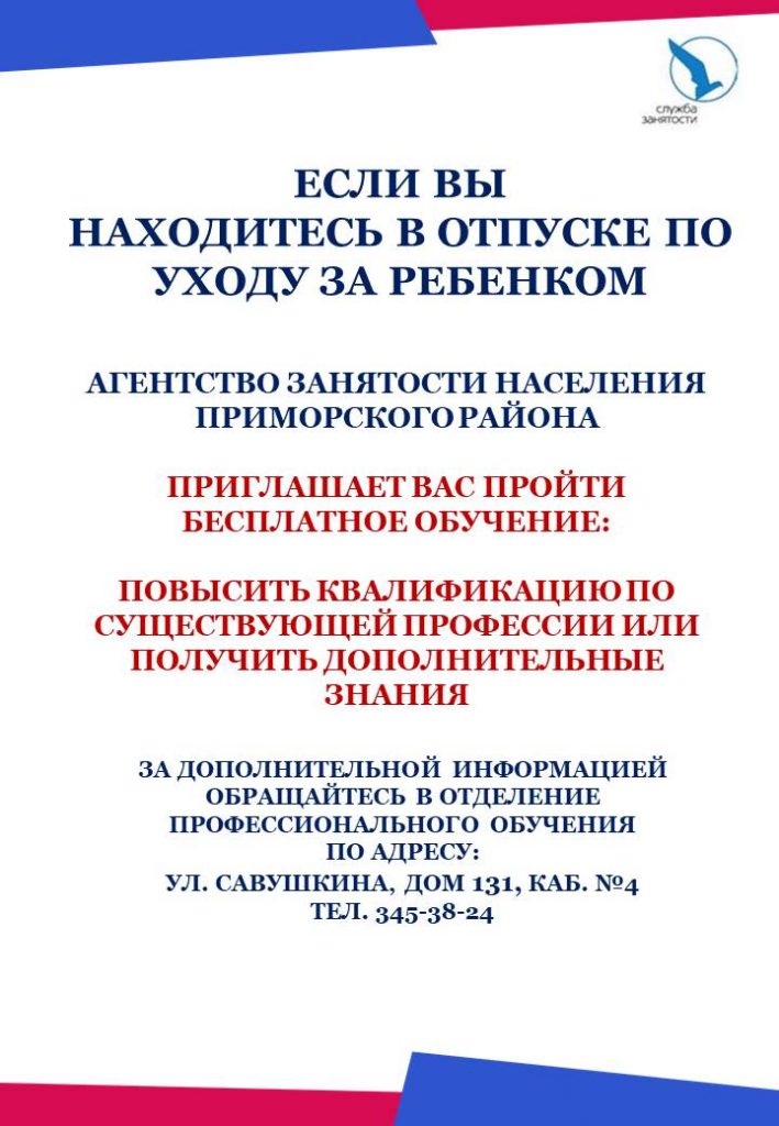 Агентство занятости населения Приморского района приглашает пройти бесплатное обучение
