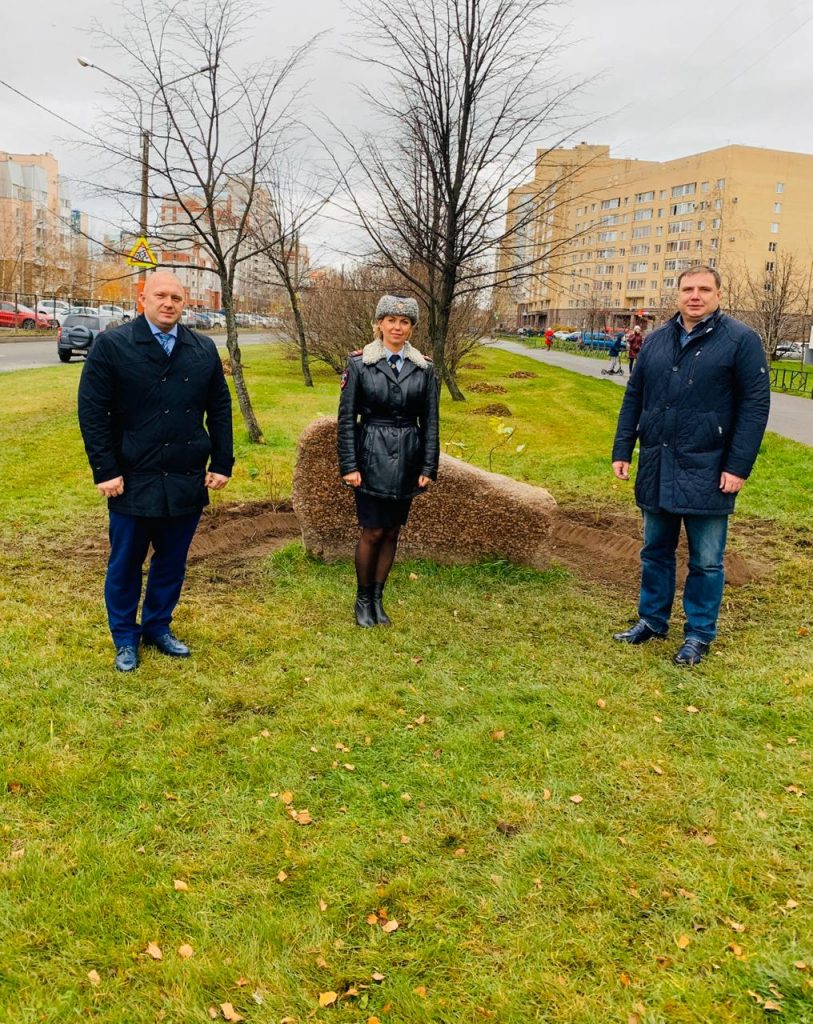 9 ноября 2020 года начальник УМВД России по Приморскому району г. СПб (далее – УМВД) полковник полиции Саунин Е.В. и председатель Общественного совета при УМВД Угаров И.Н. в преддверии Дня сотрудника ОВД РФ высадили кустарники на Аллее Памяти.