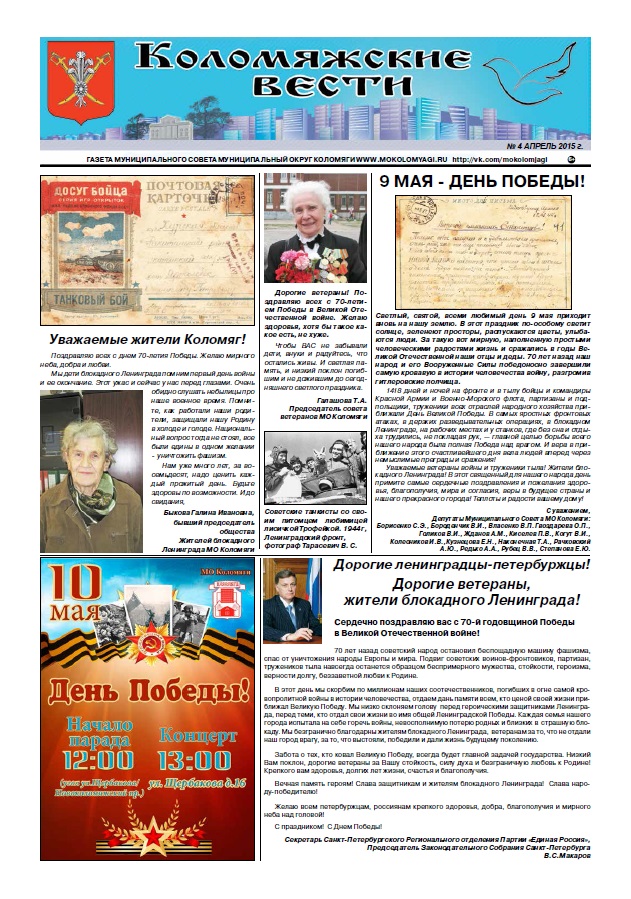 Уважаемые читатели! Свежий номер газеты вы можете посмотреть на нашем сайте: mokolomyagi.ru/files/file/4_web.pdf