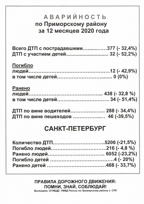 Аварийность по Приморскому району за 12 месяцев 2020 года