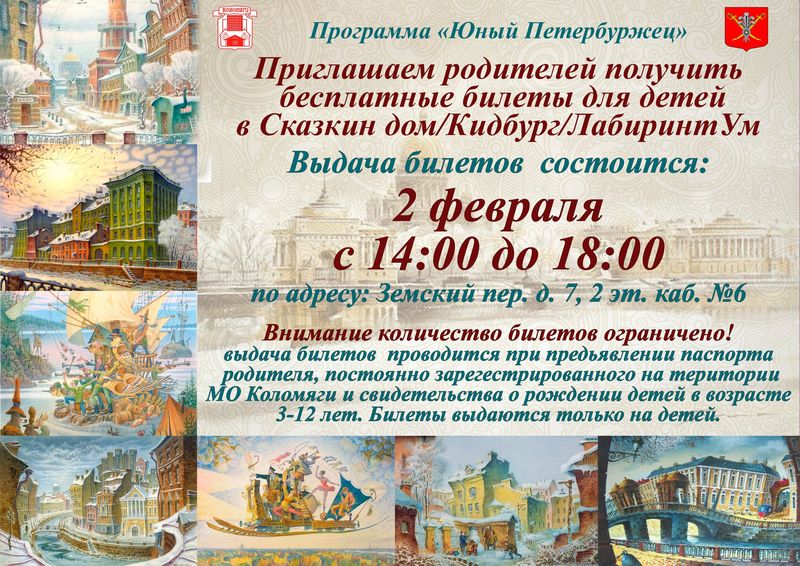 Бесплатные билеты в рамках программы «Юный Петербуржец»