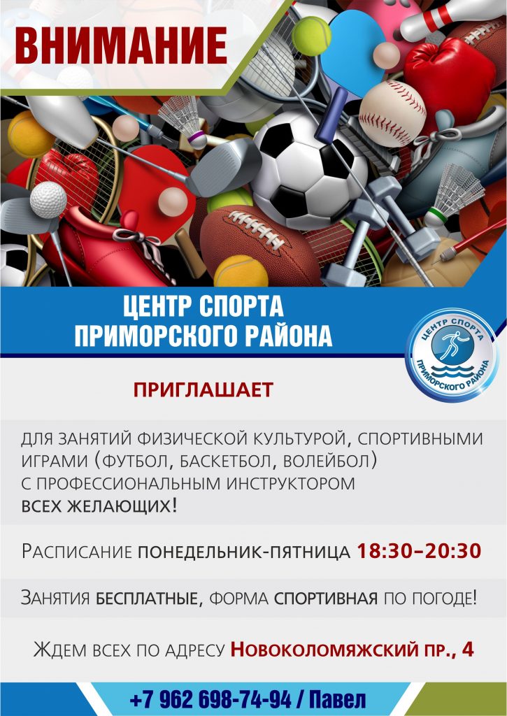 Бесплатные спортивные секции на территории МО Коломяги