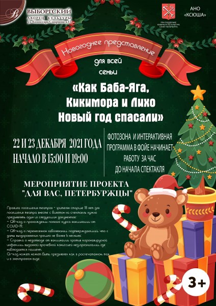 Дорогие наши жители приглашаем вас 13 ДЕКАБРЯ с 11:00 (ДО ЭТОГО ВРЕМЕНИ ФОРМА НА ЗАПИСЬ ЗАКРАТА)записаться на получение билетов на новогоднее представление «Как Баба-Яга, Кикимора и Лихо Новый год спасали».