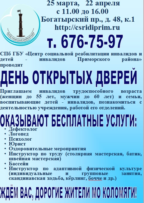 Центр социальной реабилитации инвалидов и детей-инвалидов Приморского района проводит день открытых дверей