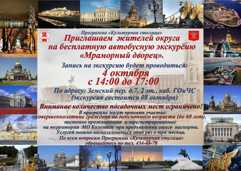 Запись на экскурсию состоится в муниципалитете (кабинет 6) 4 октября с 14.00 до 17.00.