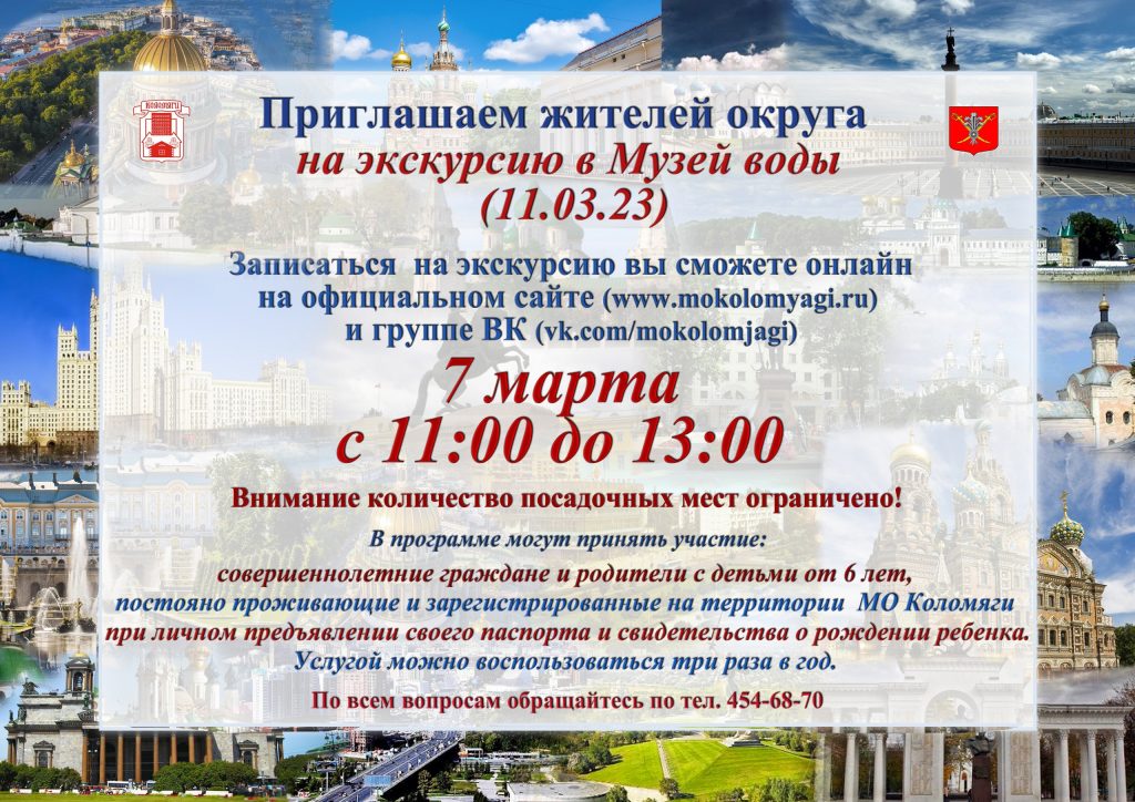 — Экскурсия для совершеннолетних граждан (от 18 лет) и родителей с детьми от 6 лет, постоянно зарегистрированных на территории МО Коломяги