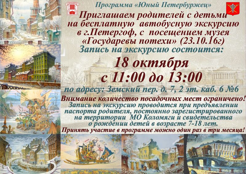 Приглашаем родителей с детьми от 7-ми лет на экскурсию в Петергоф