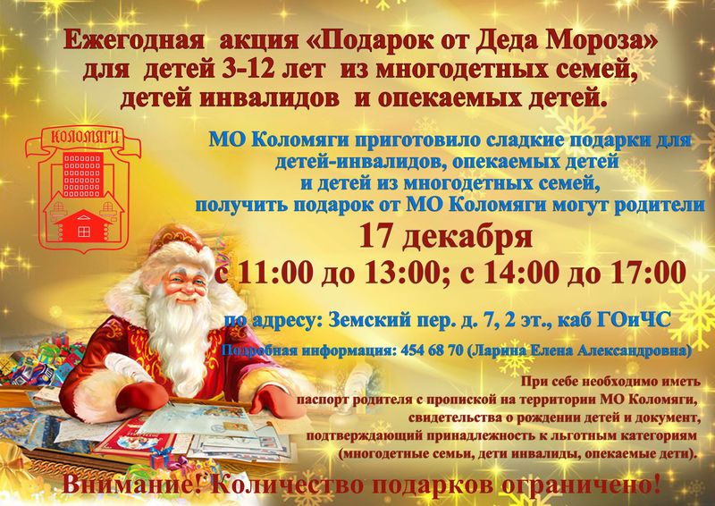 Ежегодная акция МО Коломяги «Подарок от Деда Мороза»