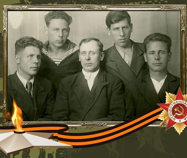 Четыре брата ушли на фронт, а дедушке только исполнилось 13 лет и его не взяли, так как он был еще маленьким для того, чтобы воевать.