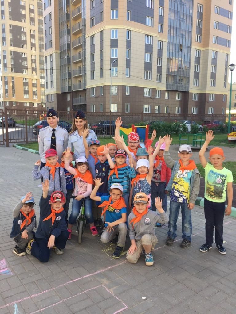 В начале занятия ребята повторили правила перехода через проезжую часть, ответив на вопросы и загадки инспектора. Ребята разделились на команды и соревновались в быстроте и правильности катания на самокате. А в заключительной части мероприятия маленькие участники рисовали мелками на асфальте – «Город, в котором я живу».