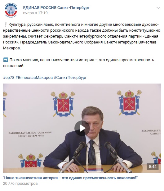 По его мнению, наша тысячелетняя история – это единая преемственность поколений.