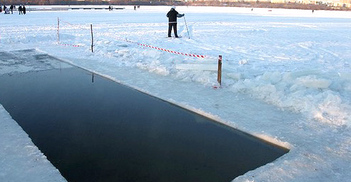 Купаться только в специально оборудованных купелях. Самостоятельно подготовить прорубь, учитывая все тонкости, смогут только профессионалы, им и нужно доверить это непростое дело.