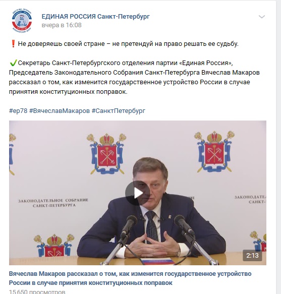 Секретарь Санкт-Петербургского отделения партии «Единая Россия», Председатель Законодательного Собрания Санкт-Петербурга Вячеслав Макаров рассказал о том, как изменится государственное устройство России в случае принятия конституционных поправок.