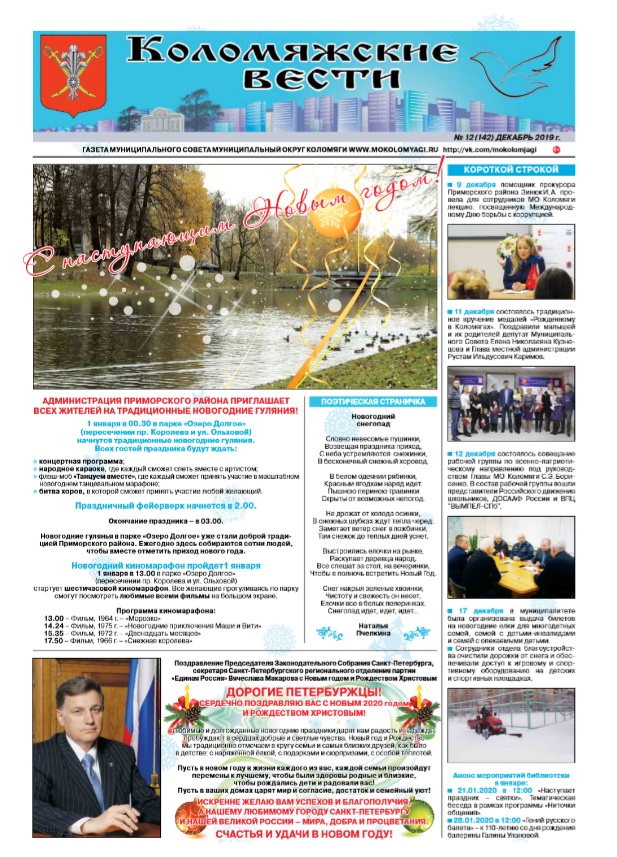 Новогодний номер газеты «Коломяжские вести», декабрь-2019