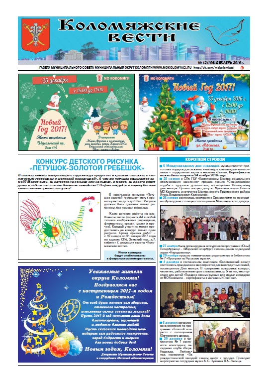 Уважаемые читатели, новогодний номер газеты, декабрь 2016, вы можете посмотреть на нашем сайте — mokolomyagi.ru/files/file/kolom_12_16_out.pdf