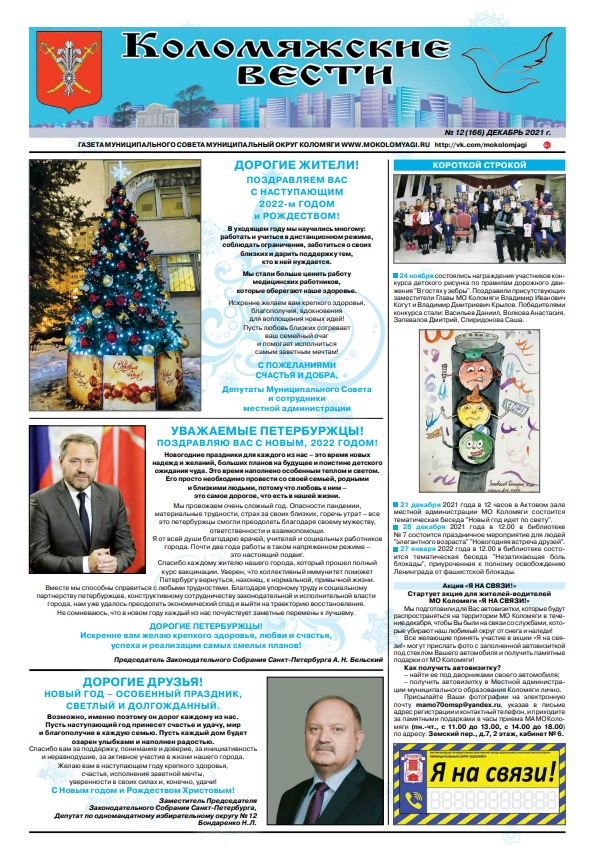 Новогодний выпуск газеты «Коломяжские вести» — декабрь, 2021
