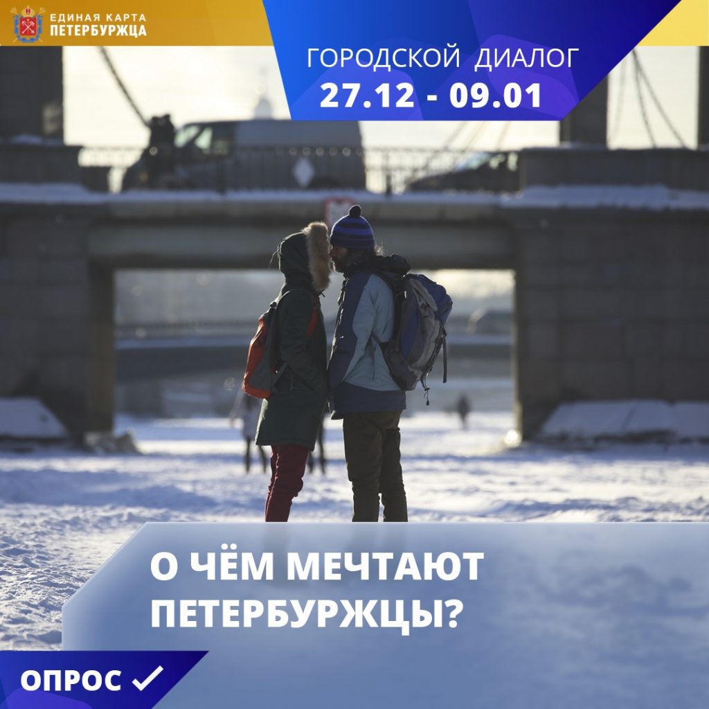 С 27 декабря по 9 января на портале ekp.spb.ru и в мобильном приложении Единой карты петербуржца проходит новый опрос «О чем мечтают петербуржцы?». Какие желания чаще всего загадывают горожане в преддверии Нового года, к каким целям будут стремиться — покажут результаты опроса.