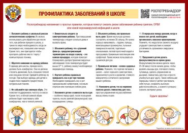 Роспотребнадзор напоминает о простых правилах, которые помогут снизить риски заболевания ребенка гриппом, ОРВИ или новой коронавирусной инфекцией в школе.