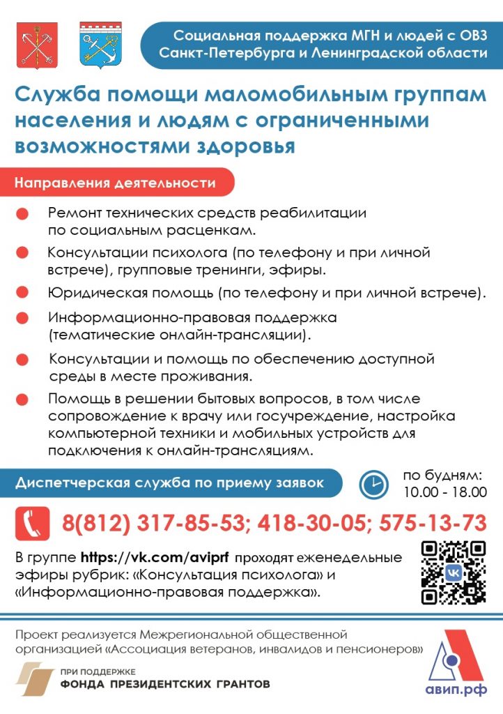 На базе Межрегиональной общественной организации «Ассоциация ветеранов, инвалидов и пенсионеров» (МРОО «АВИП») с марта 2023 года запущен в работу социальный проект «Служба помощи маломобильным группам населения и людям с ограниченными возможностями здоровья» («Служба помощи»).