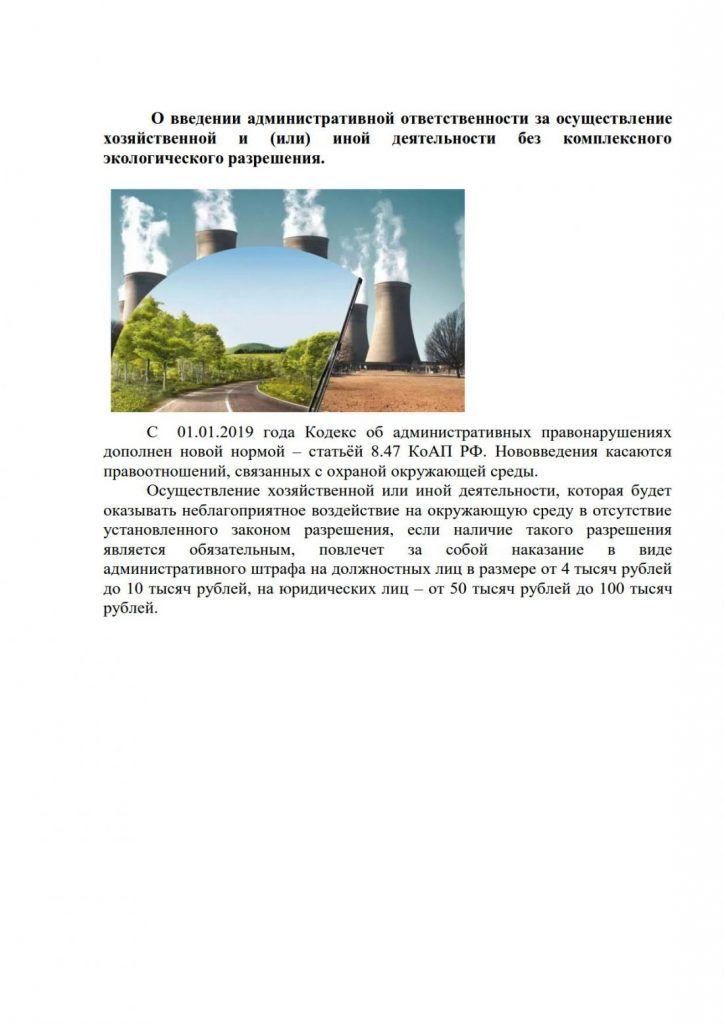 О введении административной ответственности за осуществление хозяйственной и (или) иной деятельности без комплексного экологического разрешения