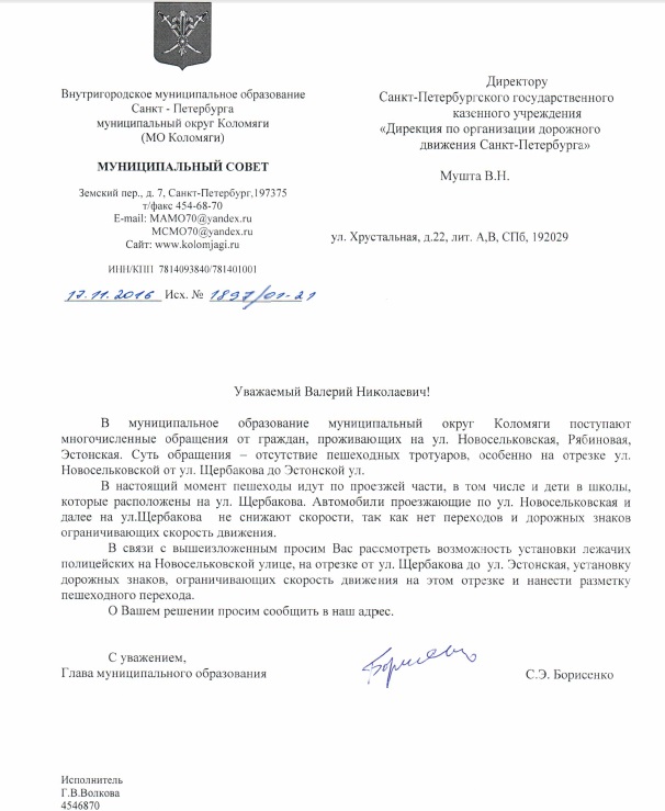 Обращение по поводу отсутствия пешеходных тротуаров, в том числе на отрезке ул. Новосельковской от ул. Щербакова до ул. Эстонской