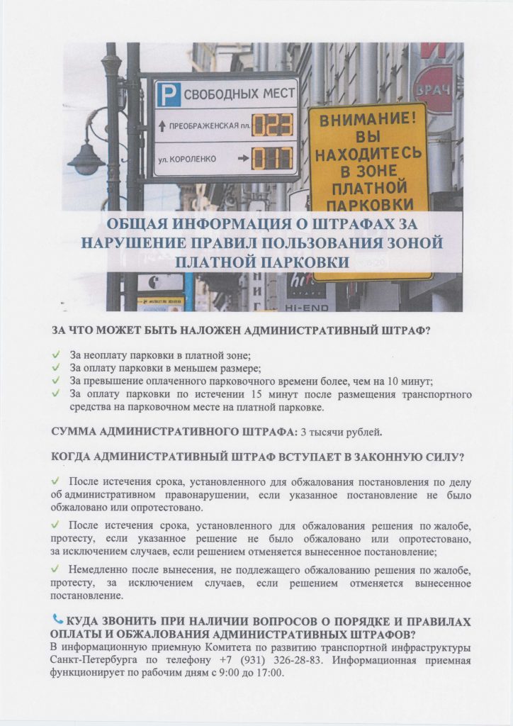Общая информация о штрафах за нарушение правил пользования зоной платной парковки