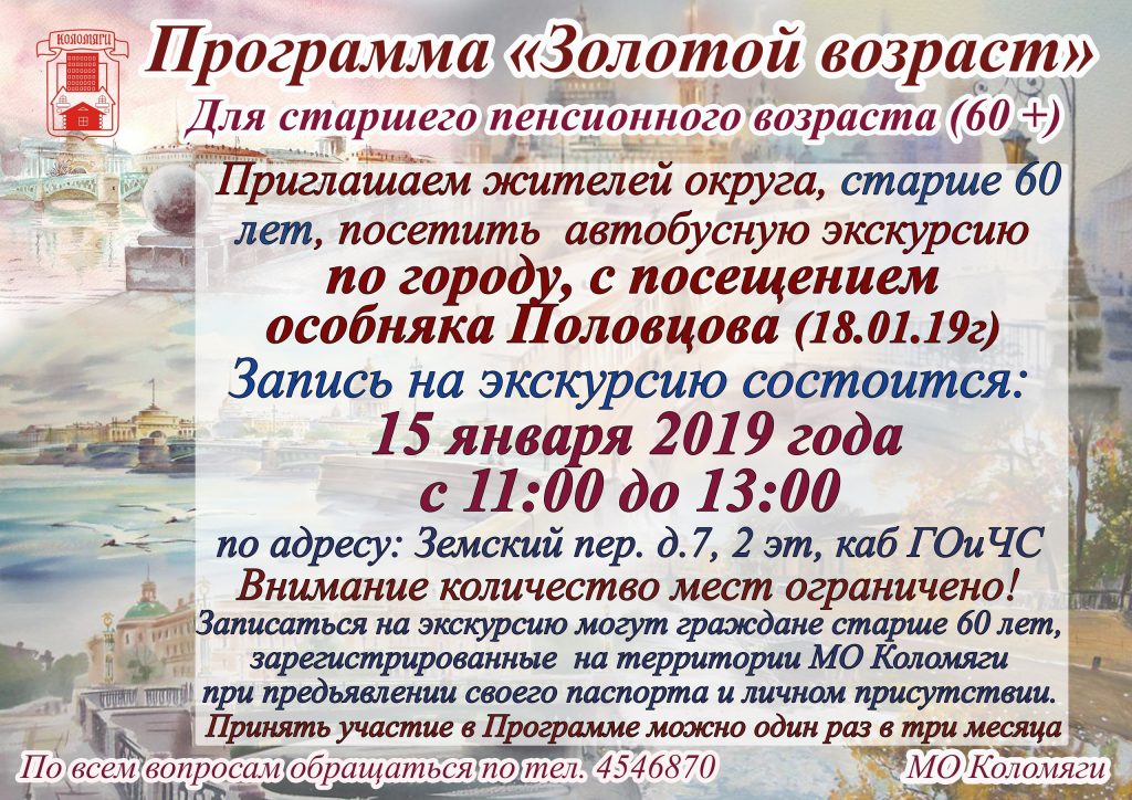 Обзорные экскурсии по городу с посещением особняка Половцова по программам «Культурная столица» и «Золотой возраст»