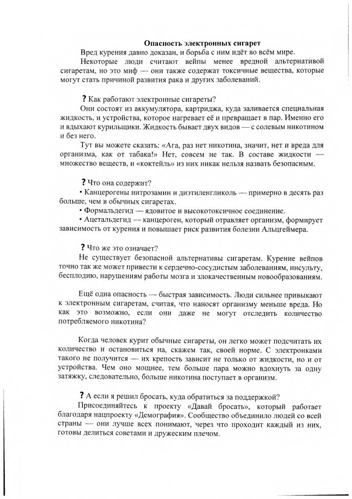 Опасность электронных сигарет