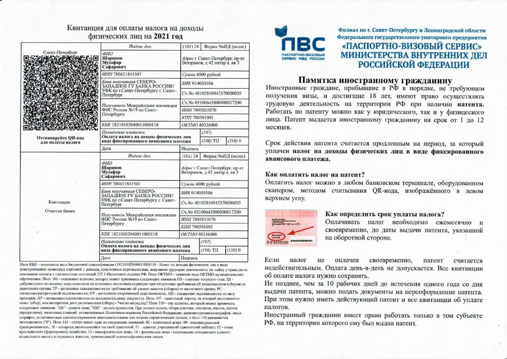 Памятка паспортно-визового центра