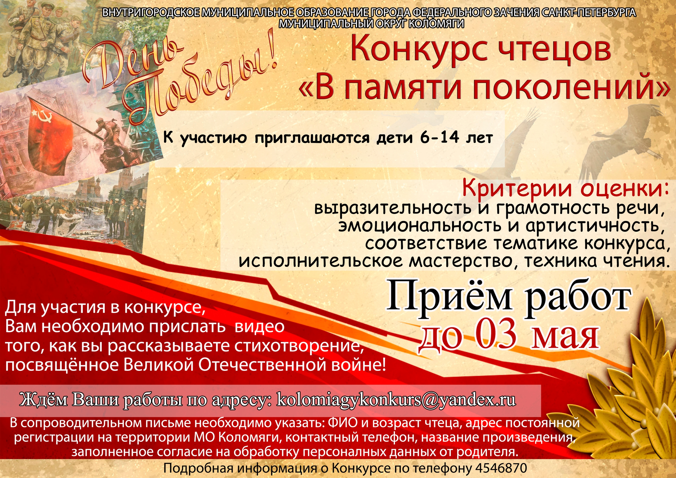 Приглашаем принять участие в конкурсе чтецов «В памяти поколений»