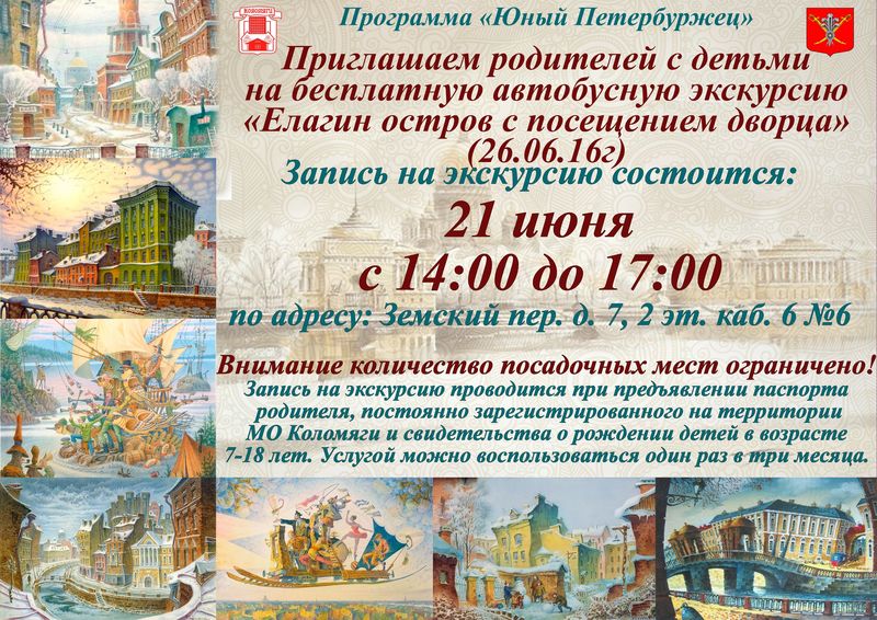 Приглашаем родителей с детьми на экскурсию «Елагин остров с посещением дворца»