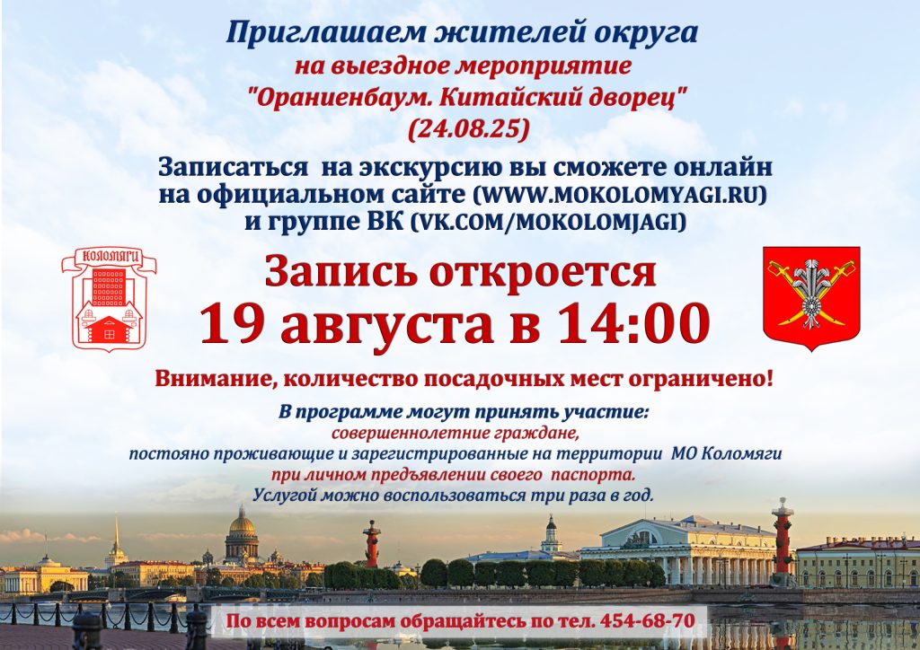 — Экскурсия для совершеннолетних граждан от 18 лет, постоянно зарегистрированных на территории МО Коломяги