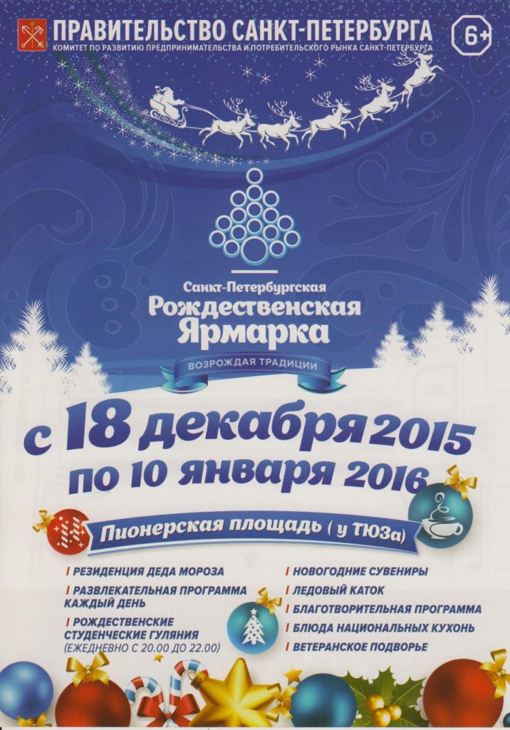 Ежегодная Рождественская ярмарка на площади у ТЮЗа откроется 18 декабря 2015 года.