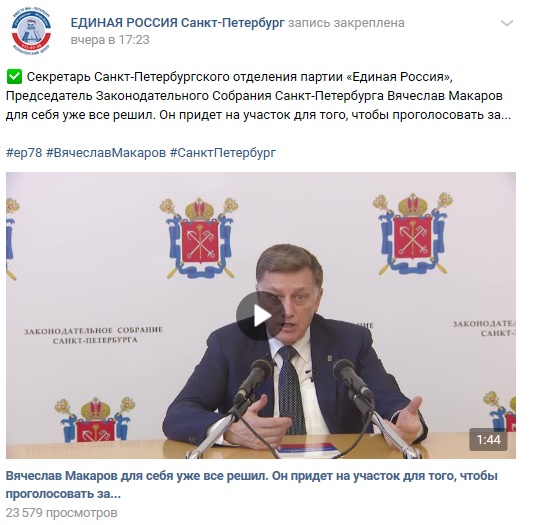 Секретарь Санкт-Петербургского отделения партии «Единая Россия», Председатель Законодательного Собрания Санкт-Петербурга Вячеслав Макаров для себя уже все решил. Он придет на участок для того, чтобы проголосовать за…