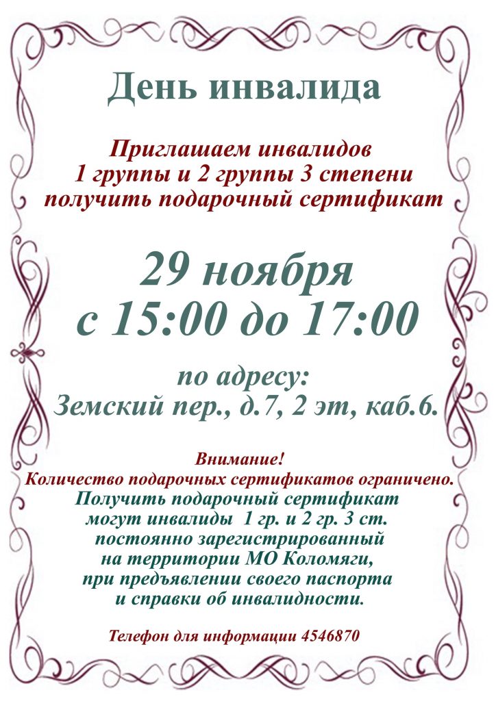 Сертификаты ко Дню инвалида