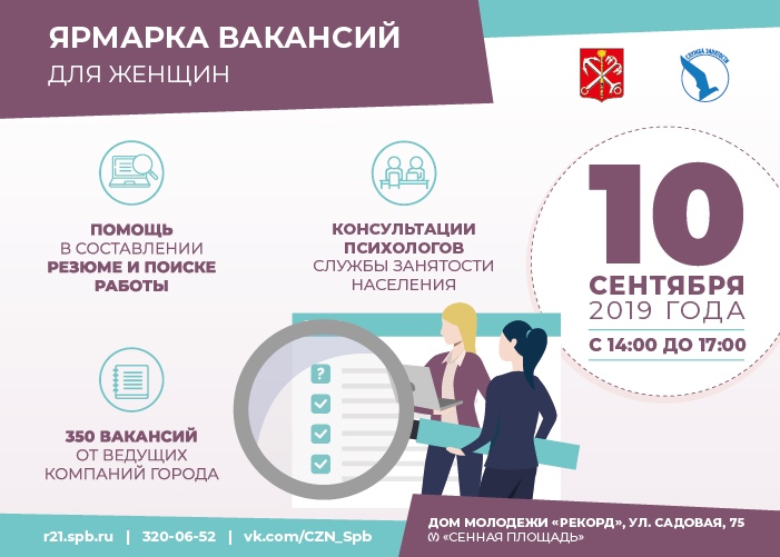 10 сентября с 14:00 до 17:00 в Доме молодежи «Рекорд» пройдет ярмарка вакансий для женщин.