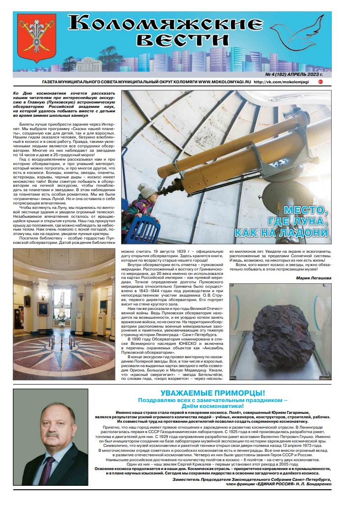 Свежий номер газеты «Коломяжские вести» — апрель, 2023