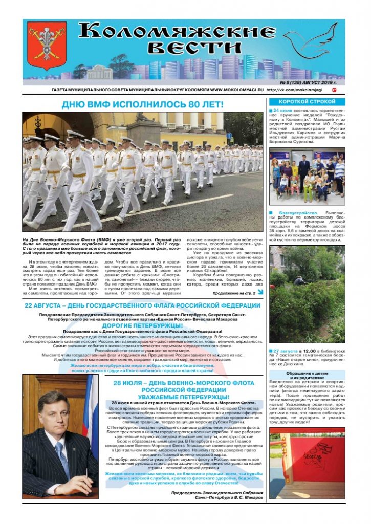 Свежий номер газеты «Коломяжские вести» — Август, 2019