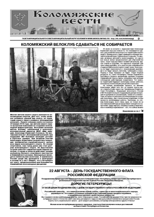 Свежий номер газеты «Коломяжские вести» — август, 2020