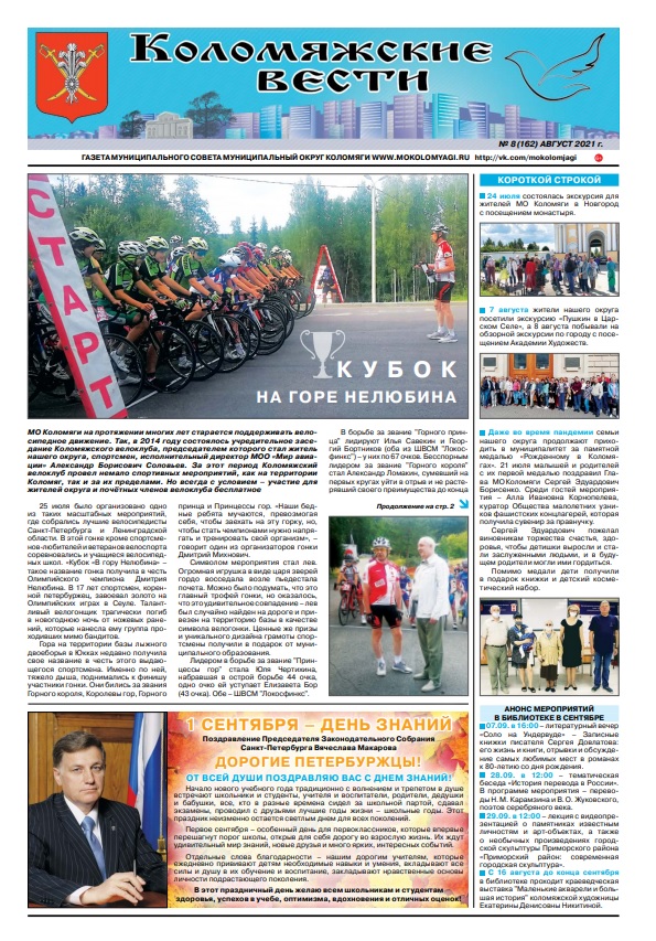 Свежий номер газеты «Коломяжские вести» — август, 2021