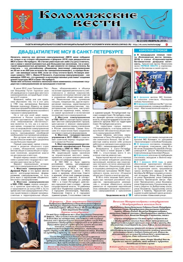 Уважаемые читатели, на сайте размещен свежий номер газеты «Коломяжские вести» — mokolomyagi.ru/files/file/kolom_02_18.pdf