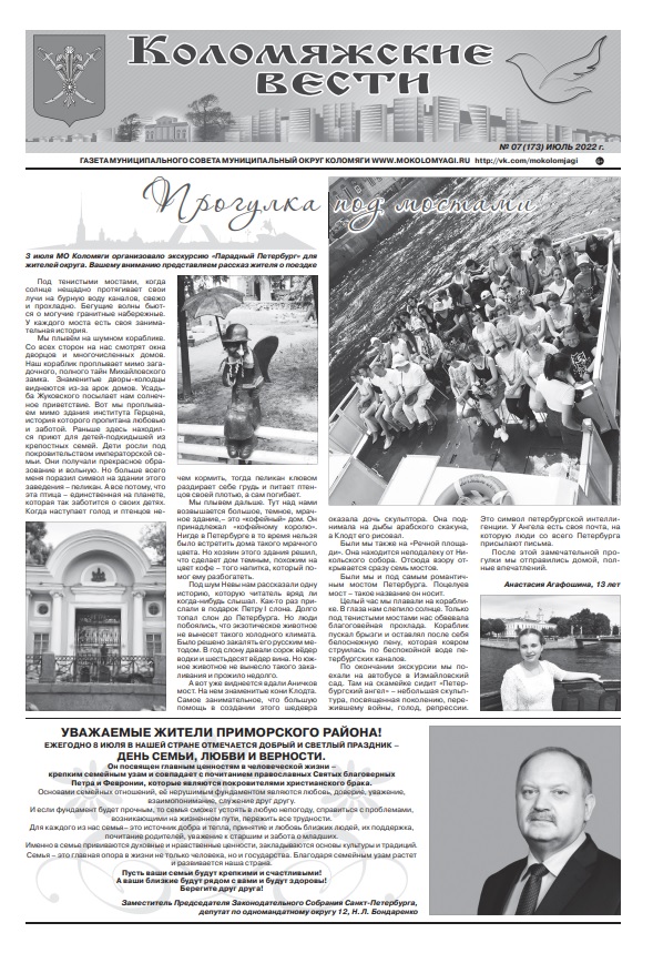 Свежий номер газеты «Коломяжские вести» — июль, 2022