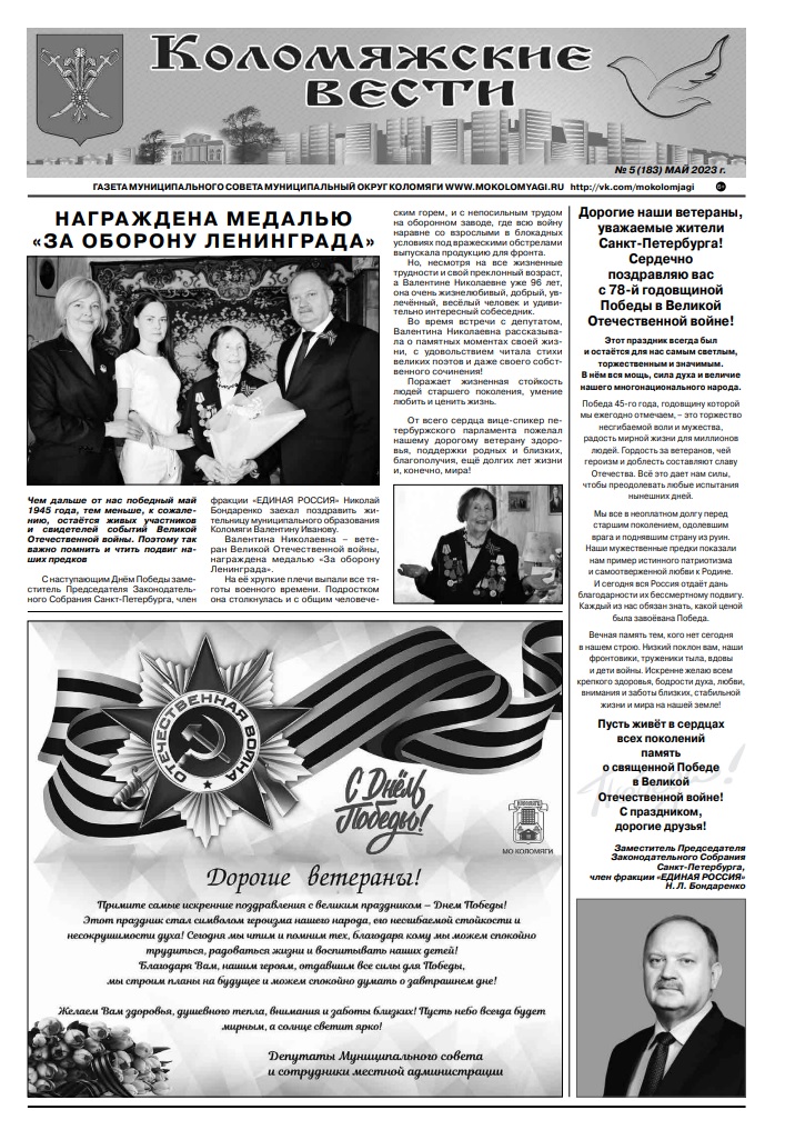 Свежий номер газеты «Коломяжские вести» — май, 2023