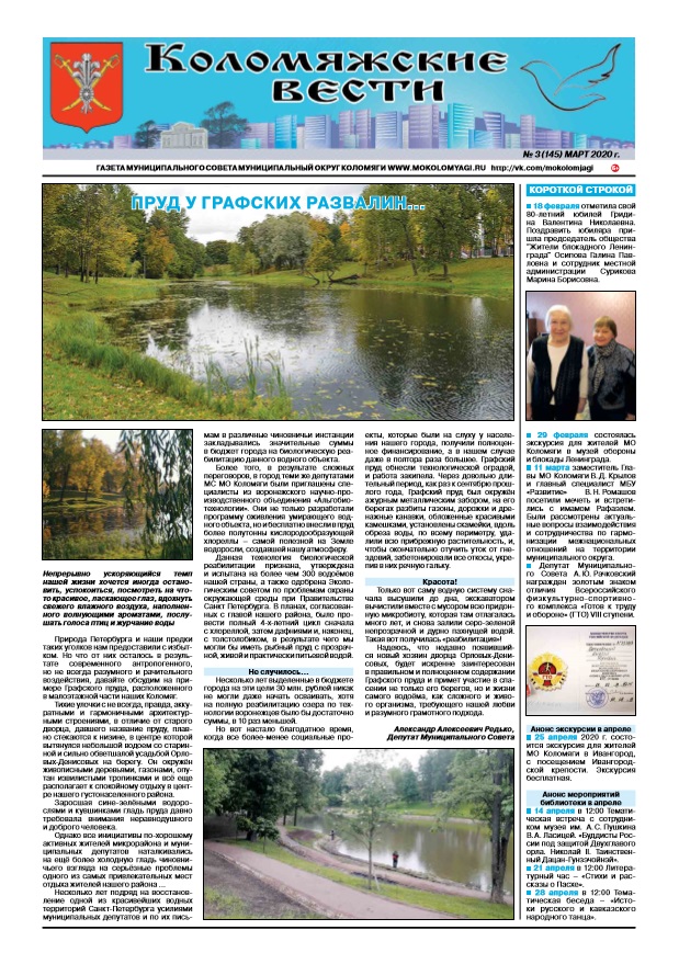 Свежий номер газеты «Коломяжские вести» — март, 2020