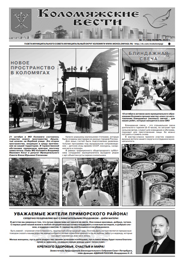 Свежий номер газеты «Коломяжские вести» — ноябрь, 2023