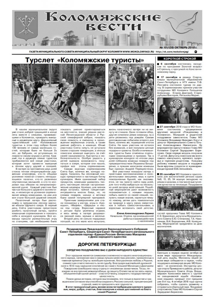 Свежий номер газеты «Коломяжские вести» — октябрь, 2018