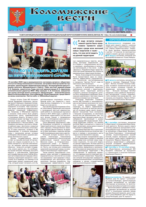 Свежий номер газеты «Коломяжские вести» — сентябрь, 2020